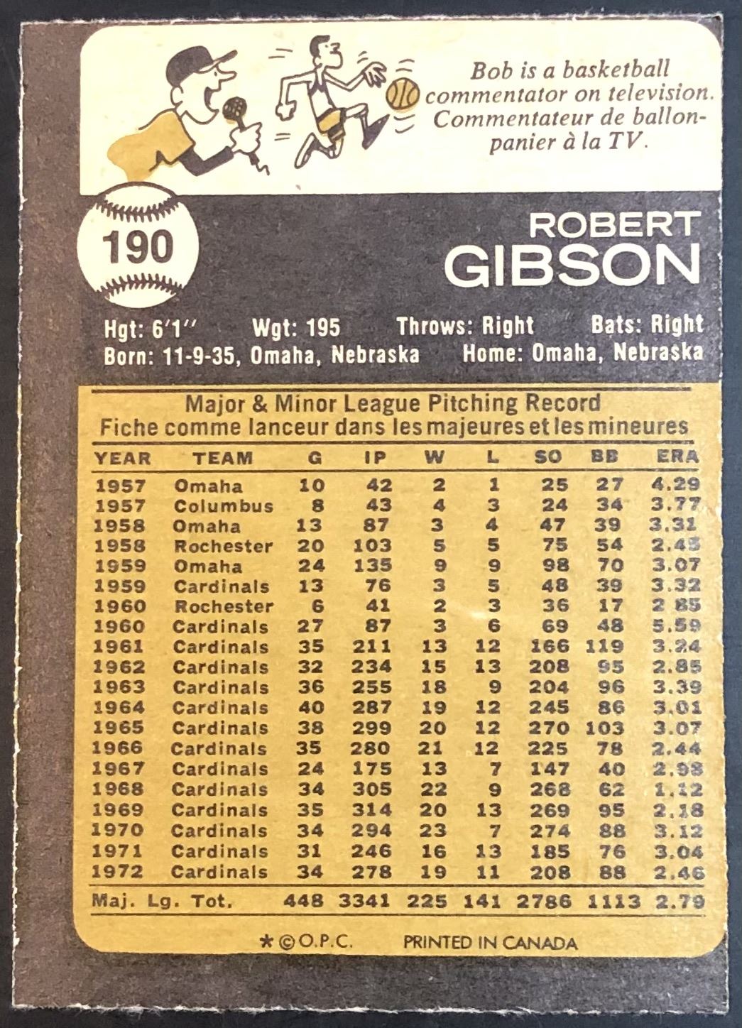 Card #190 MLB, baseball, vintage, OPC, hall of fame