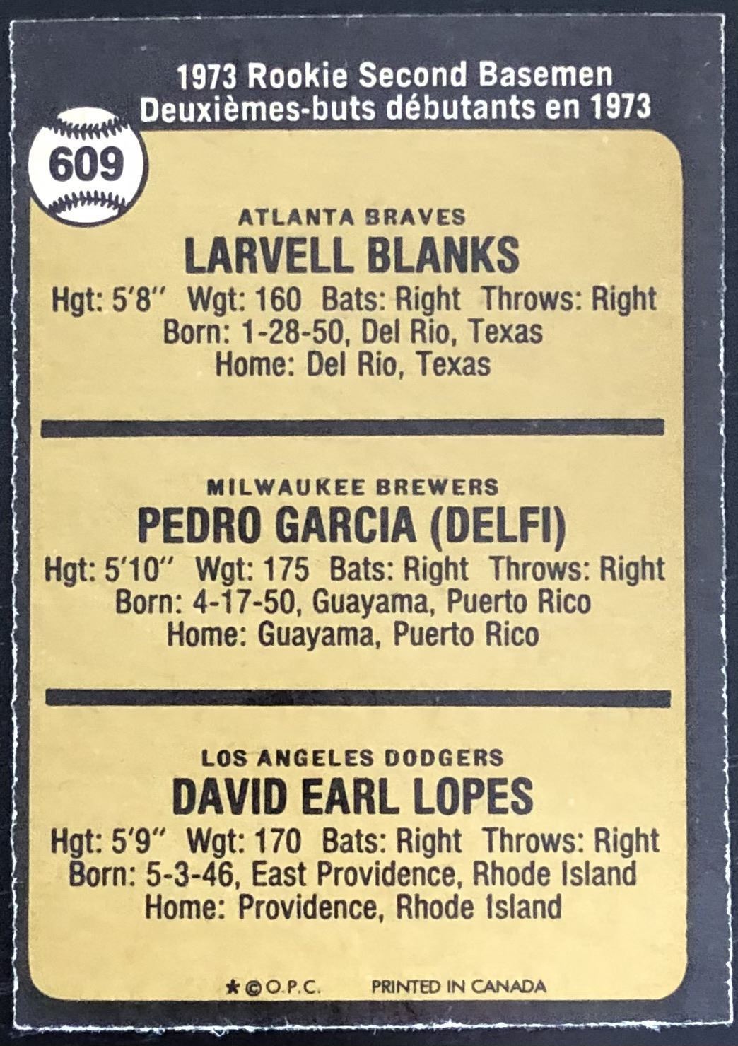Card #609 MLB, baseball, vintage, rookie, OPC