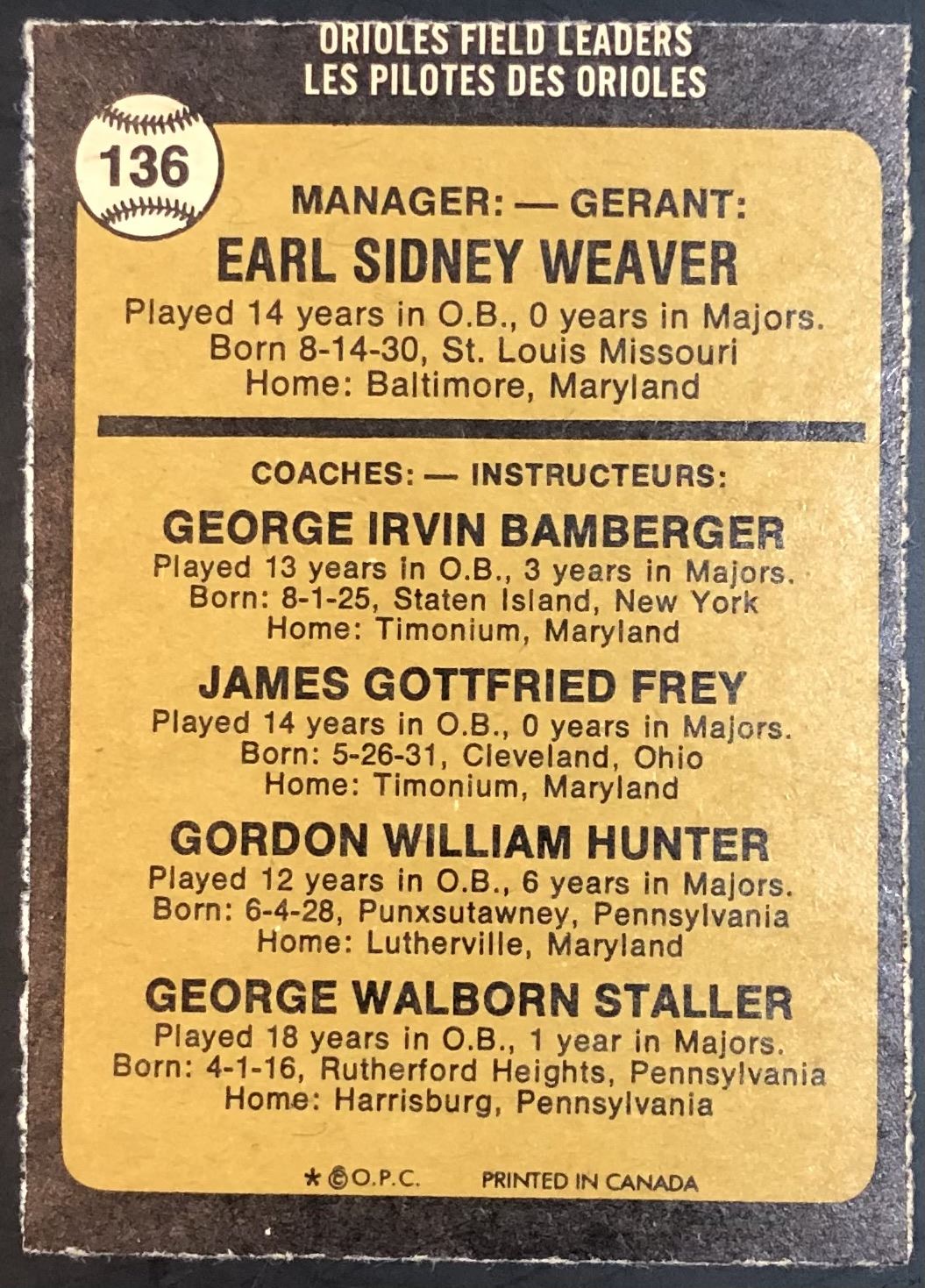 Card #136 OPC, vintage, MLB, baseball, hall of fame
