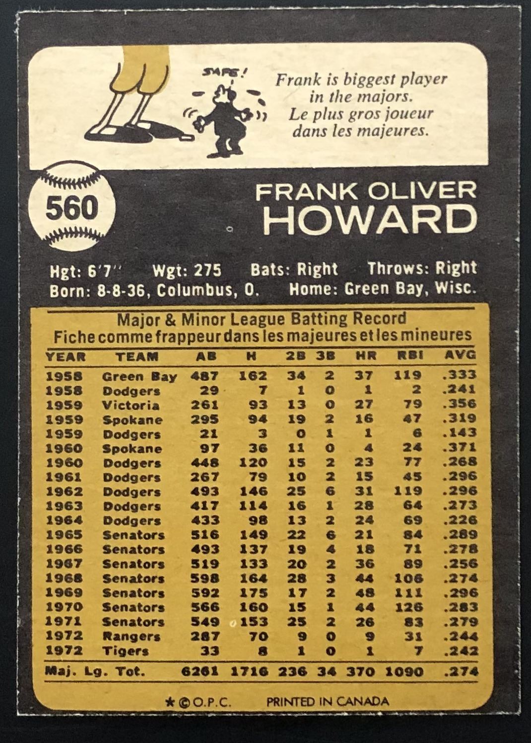 Card #560 MLB, baseball, vintage, hall of fame, OPC