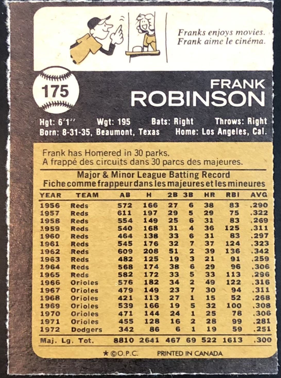 Card #175 MLB, baseball, OPC, vintage, hall of fame