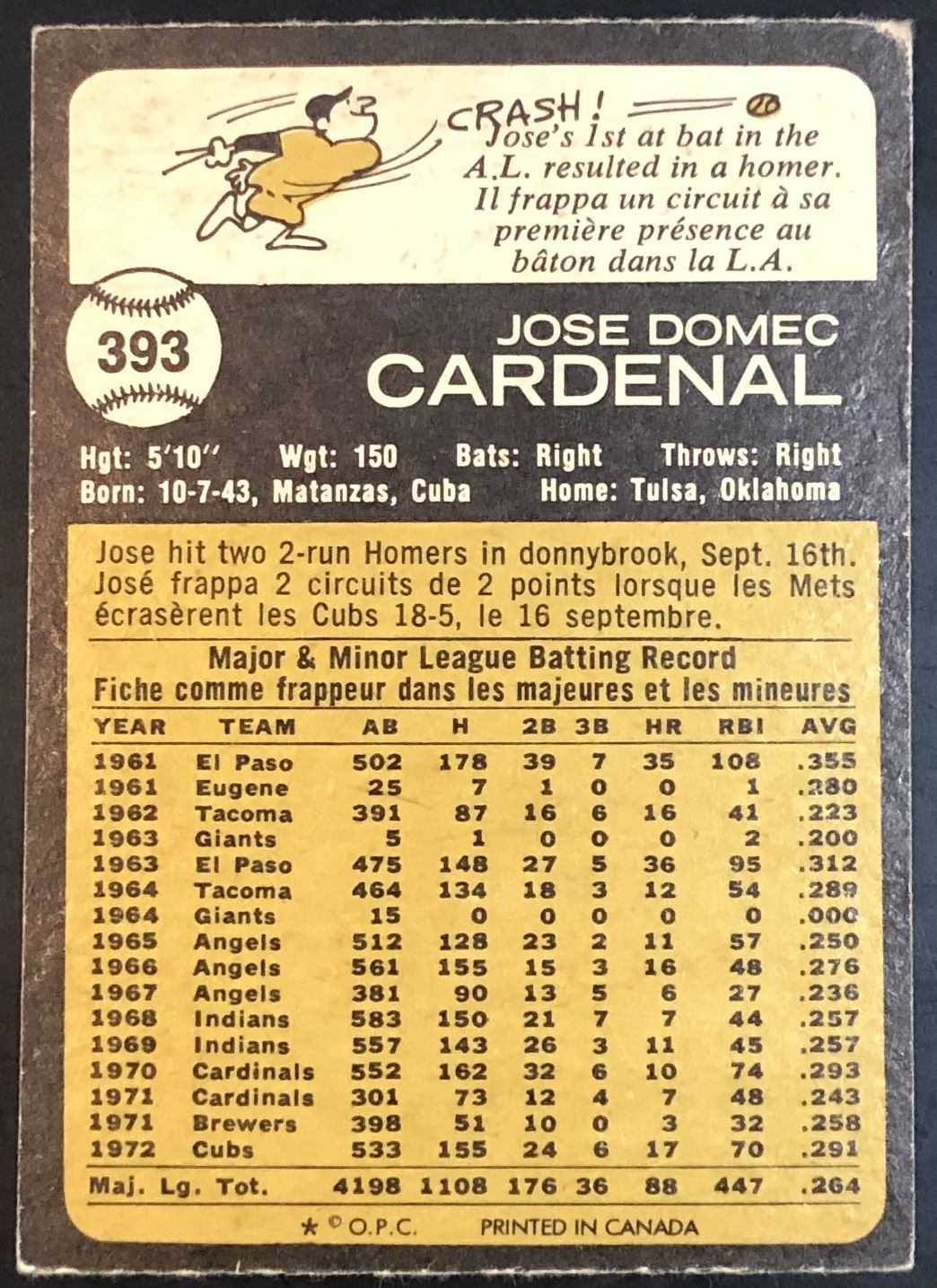 Card #393 MLB, baseball, vintage, OPC