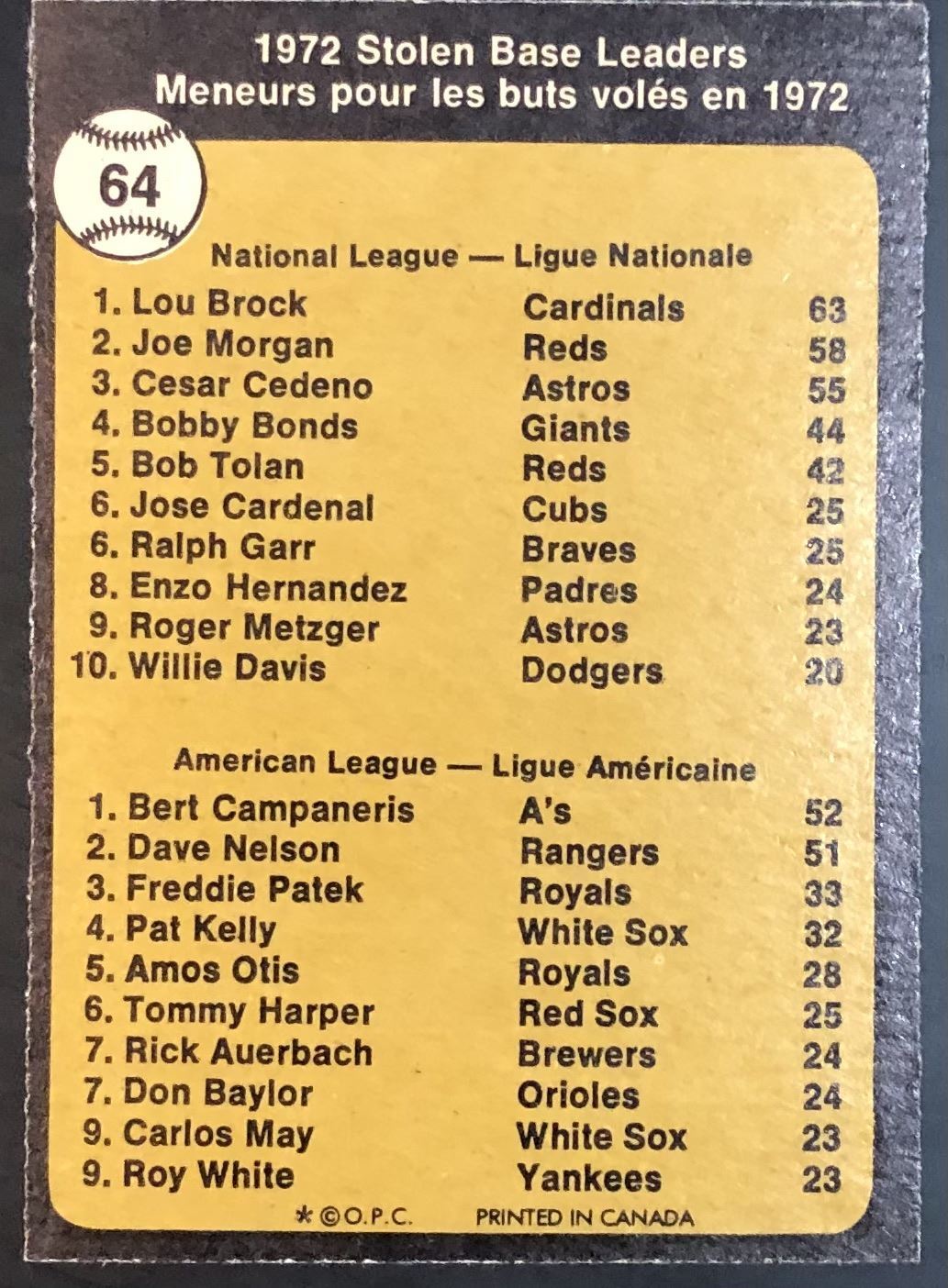 Card #64 OPC, vintage, MLB, baseball, hall of fame