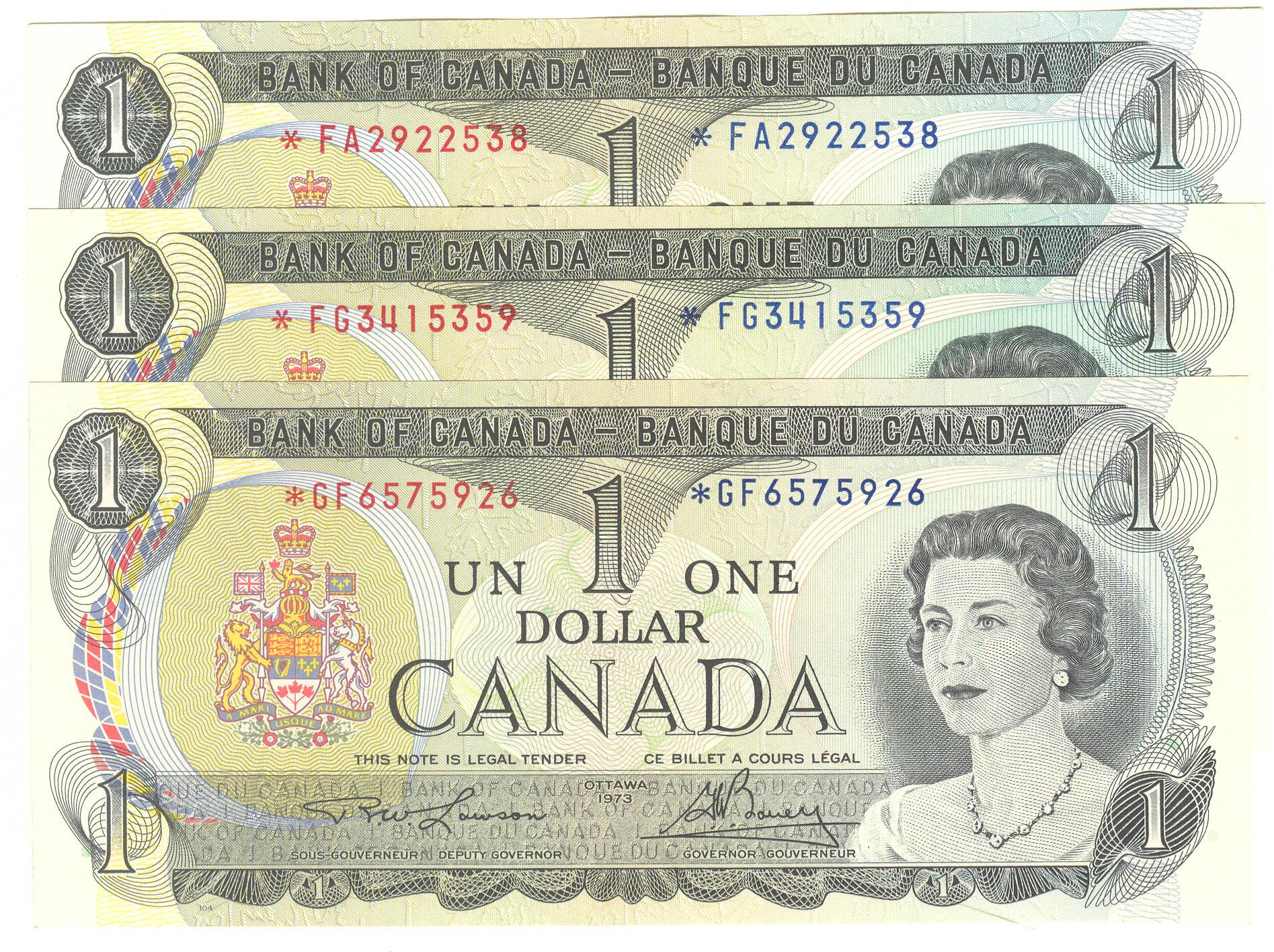 1973 One Dollar Replacement Lot of 3, BC-46aA, All UNC, *FA2922538, *FG3415359, *GF6575926.