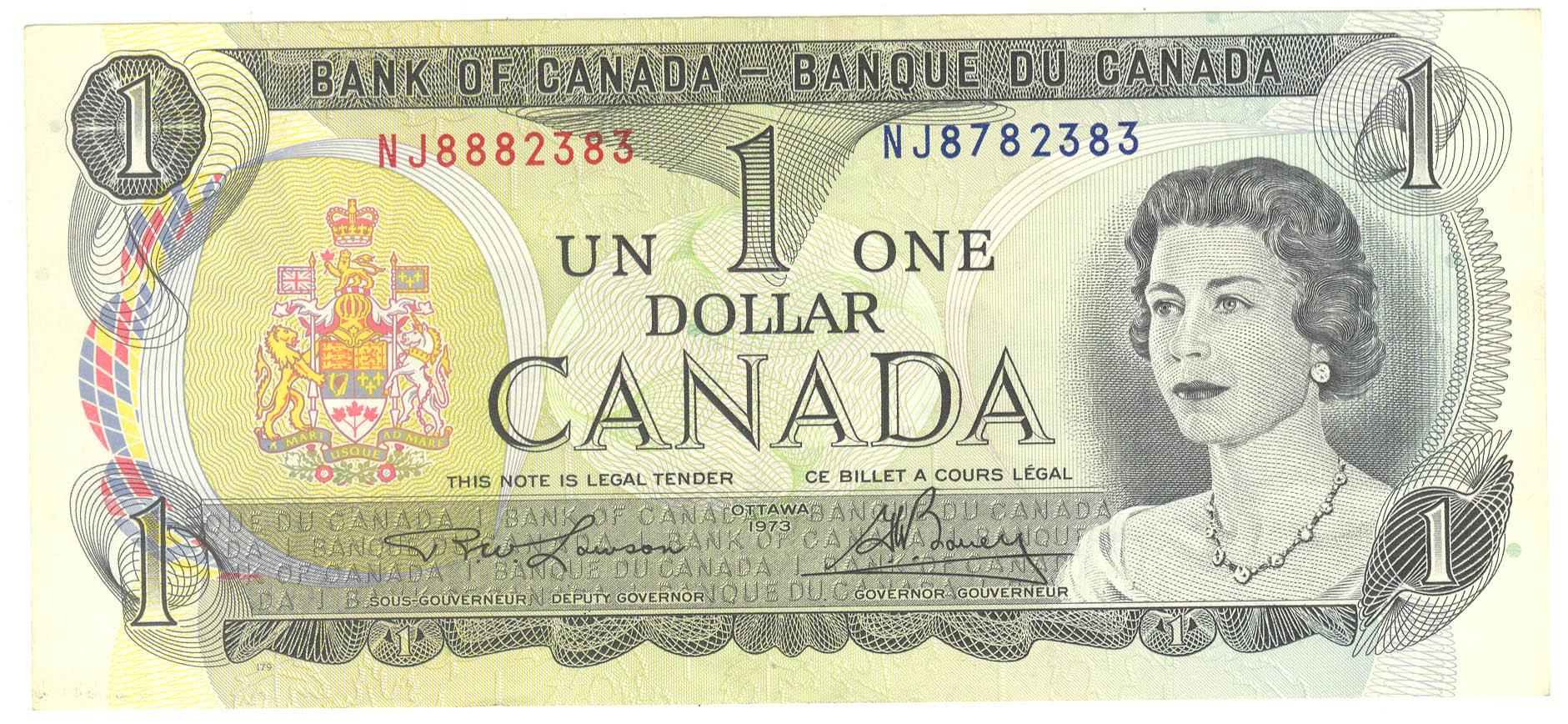 1973 One Dollars Mismatched Serial Number, BC-46a, EF, Lawson Bouey, serial NJ8882383 & NJ8782383.
