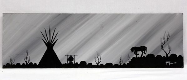 Original Painting on paper artist board ''Night Watch'' by Ray Darby, measures approx. 26 7/8''H x 8.25''W. Paiting is signed on back by artist. There are some smudge places on painting.