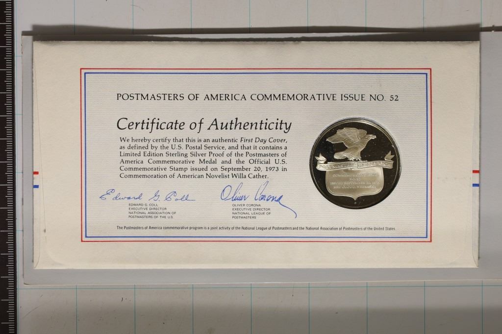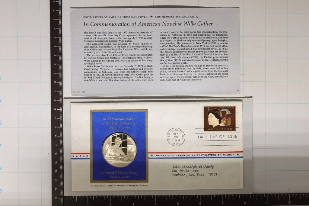 MEDAL ISSUE #52. IN COMMEMORATION OF AMERICAN NOVELIST WILLA CATHER. LIMITED EDITION PROOF MEDAL IN ORIGINAL MINT PACKAGING BY THE FRANKLIN MINT. APPROX. .8 OZ. ASW