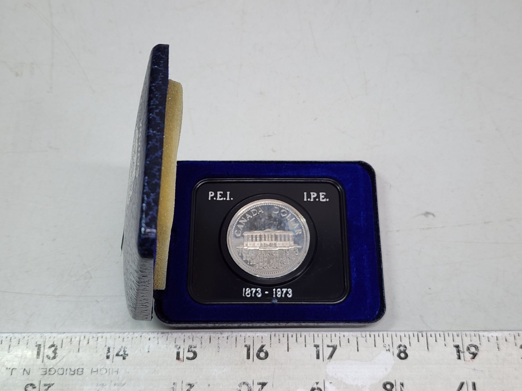 1973 Prince Edward Island Specimen Nickel Dollar. Housed in its original RCM blue clamshell case.