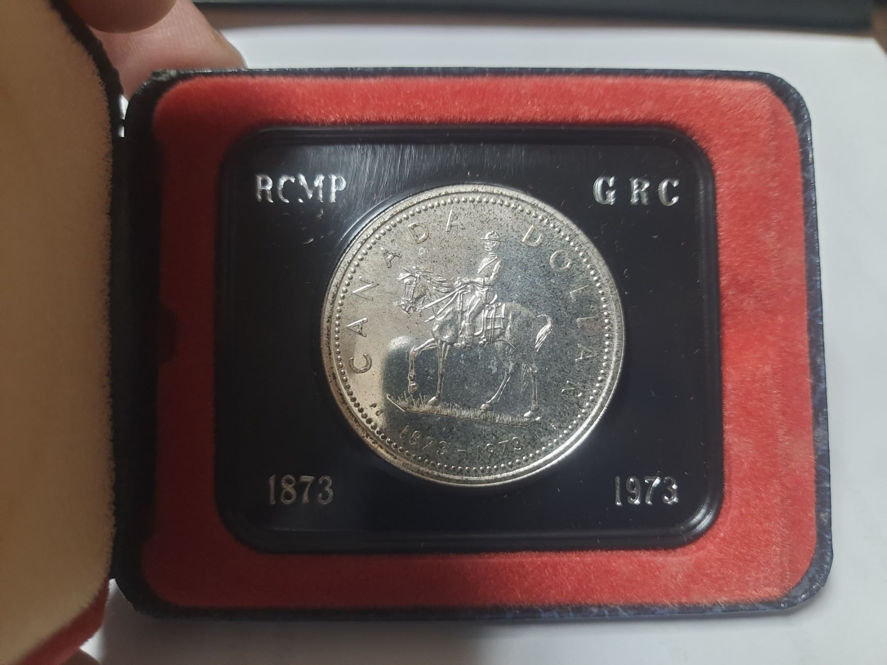 1973 RCMP Centennial Silver Dollar. Housed in its special case of issue. Specimen.