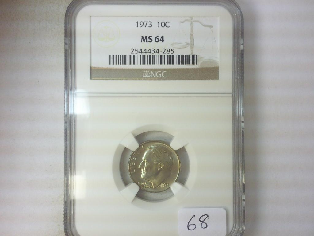 1973 ROOSEVELT DIME NGC MS64