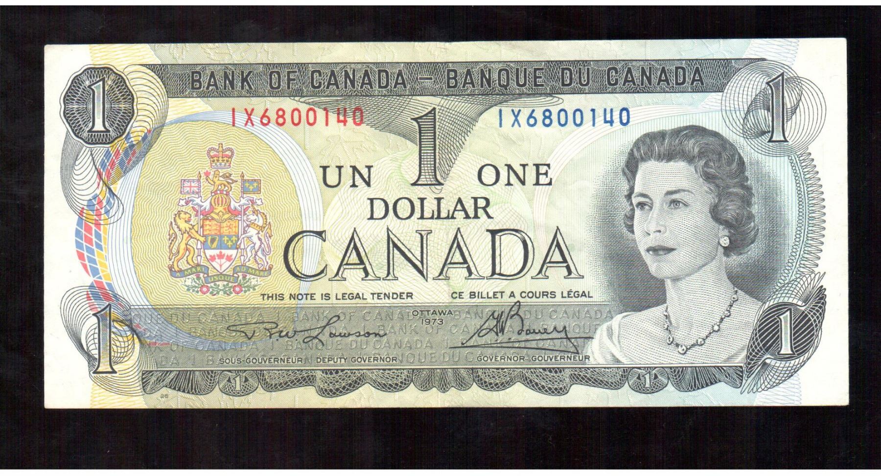 Lot 119; Dates Include 1973, $1 Bank of Canada Replacement Note, Lawson-Bouey, IX Prefix, VF-EF