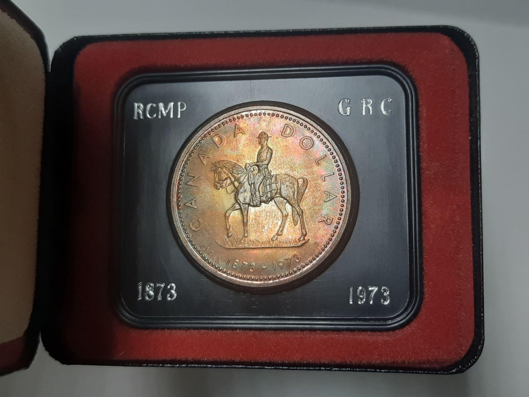 1973 Royal Canadian Mounted Police (RCMP) Centennial Commemorative Silver Dollar Coin.