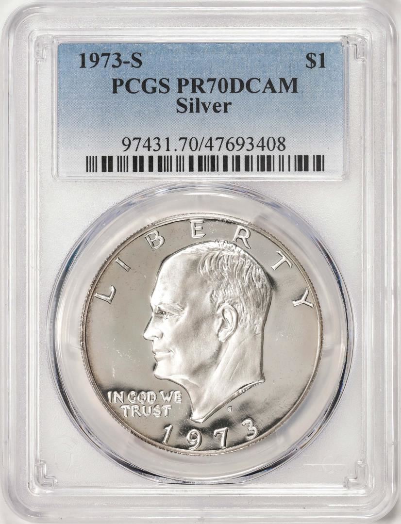 One 1973-S $1 Proof Eisenhower Silver Dollar Coin PCGS PR70DCAM. PCGS Graded.
