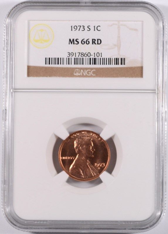 1973-S LINCOLN CENT, NGC MS-66 RED! RARE! THERE HAVE BEEN NO SALES OF MS-67 RED