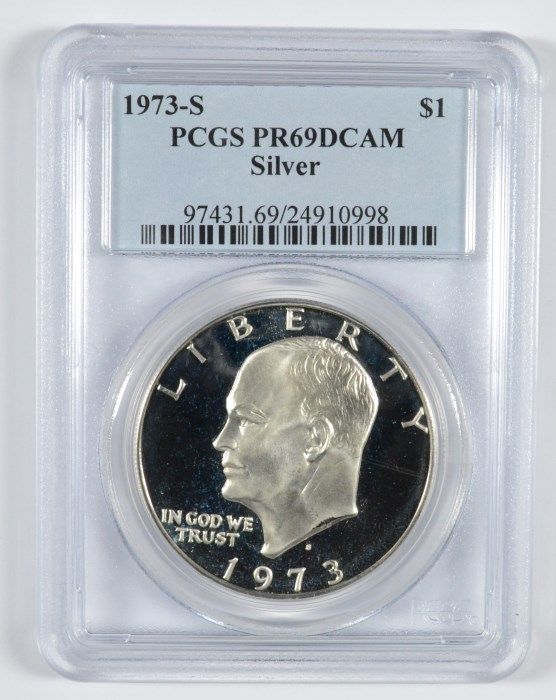 1973-S SILVER EISENHOWER DOLLAR, PCGS PROOF-69 DCAM