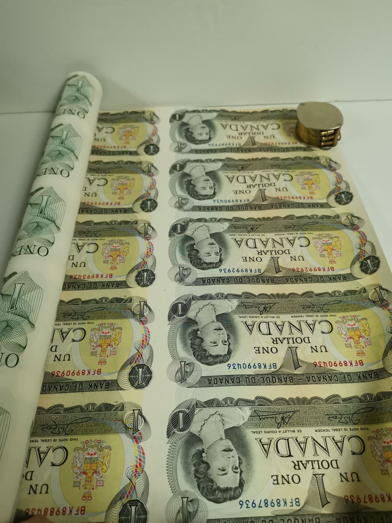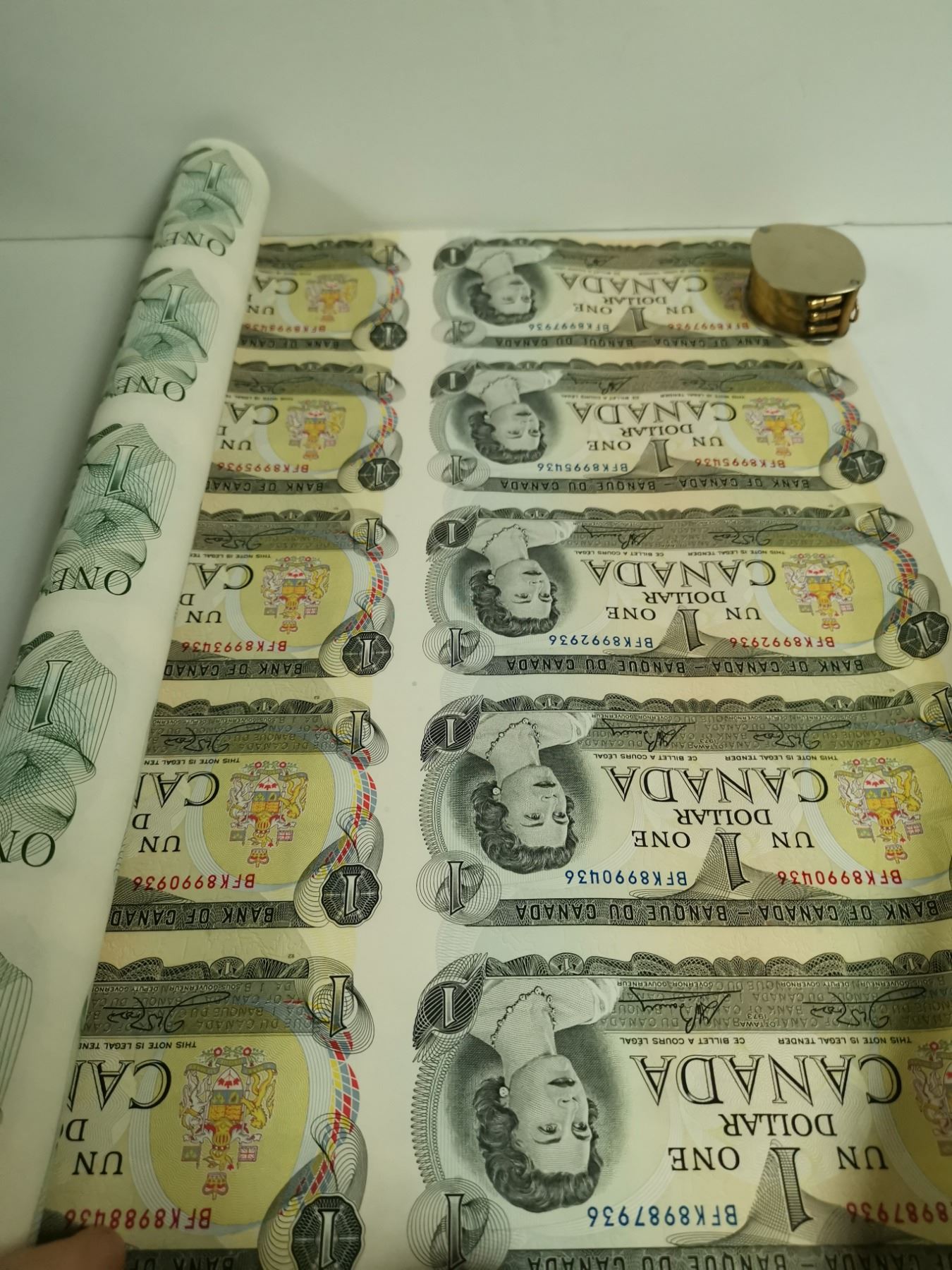 1973 Sheet of Canadian 1 dollar bills, 40 count