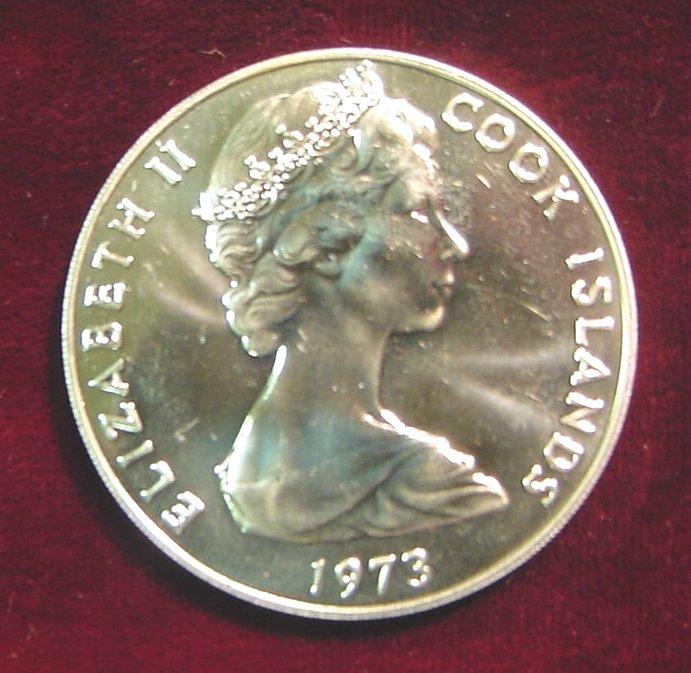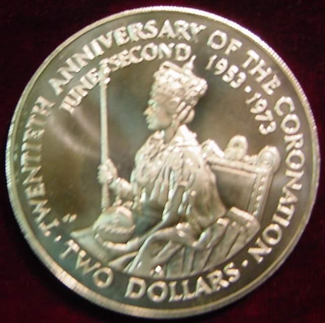 1973 Silver Two Dollar Cook Islands Commemorative of the Coronation. Proof.
