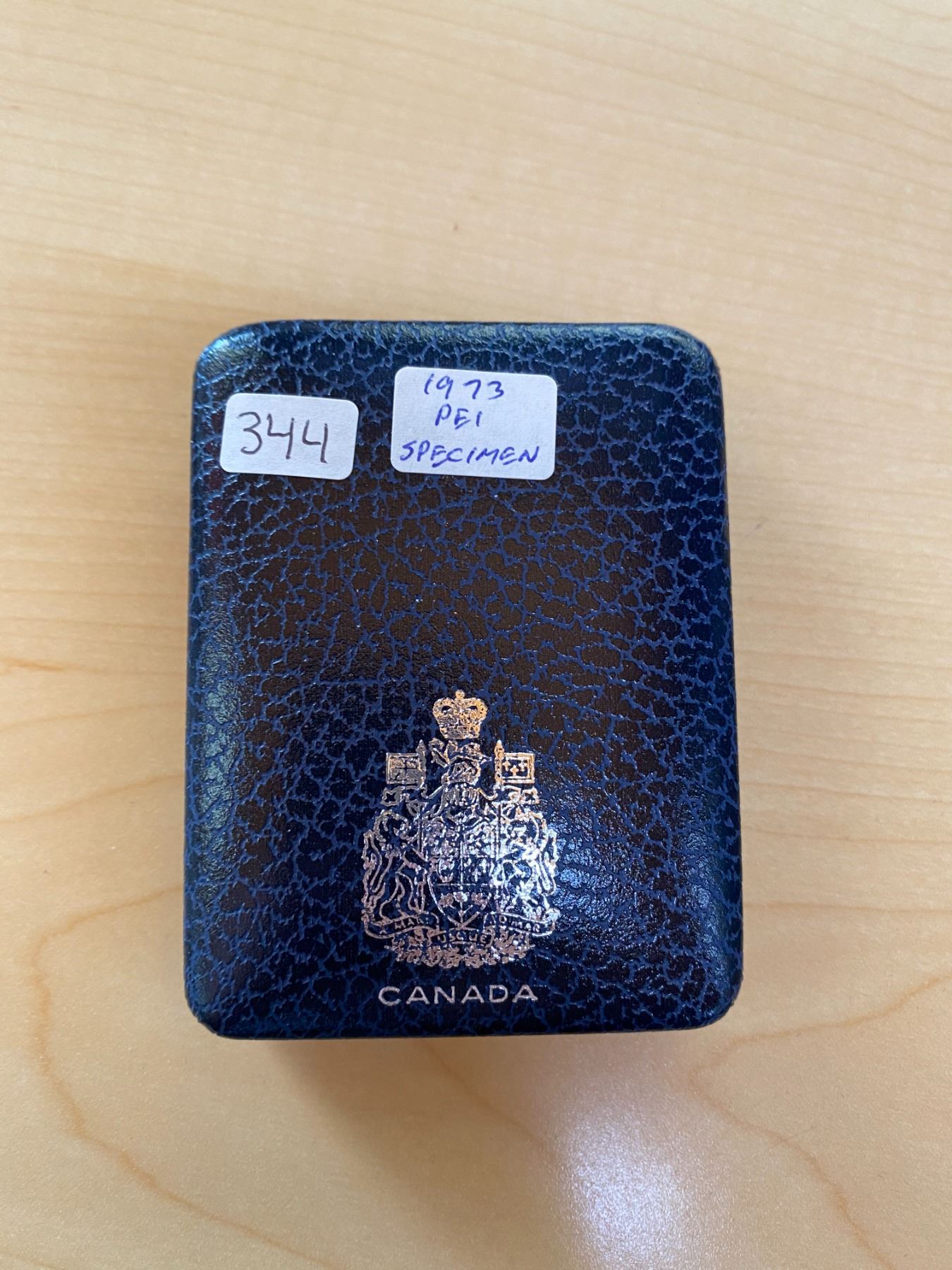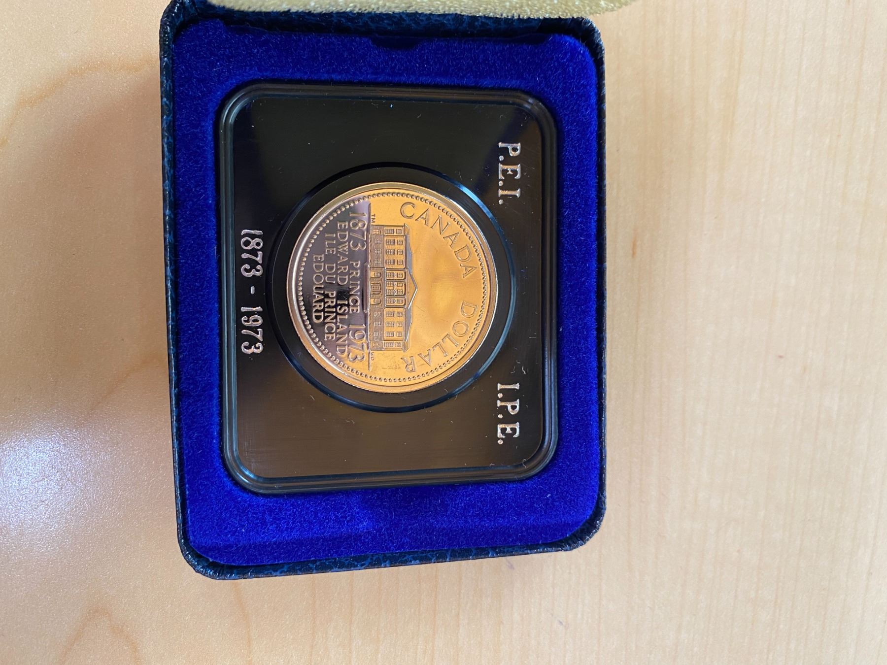1973 Specimen Dollar that commemorates the 100th Anniversary of Prince Edward Island joining Confederation in 1873. Housed in its original blue leatherette case. Specimen.