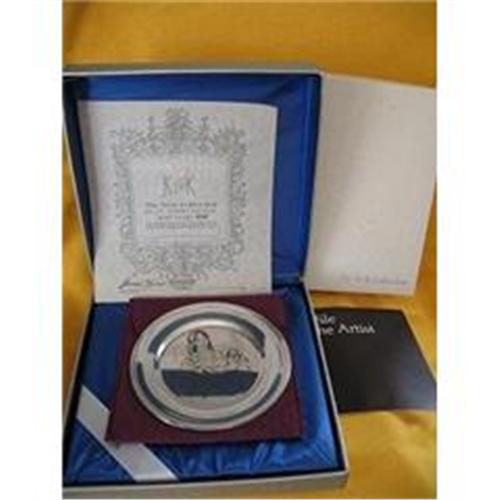 This exquisite sterling silver Mother's Day plate by artist James Hanes is marked: The 1973 Mother's Day Plate/By James Hanes/The Kirk Collection/Sterling Silver/Edition of 2500/Plate Number#0745/. Still in the original box along with the Limited Edition Certificate, Cloth Plate Cover and Profile Of The Artist Booklet. In very good + condition it measures 8 inches in diameter. An addition to any Sterling Silver, James Hanes, or S.Kirk & Son Plate Collection. <BR>SH & Ins. will be quoted after orders placed. If you have any questions please contact me and thank you for looking.