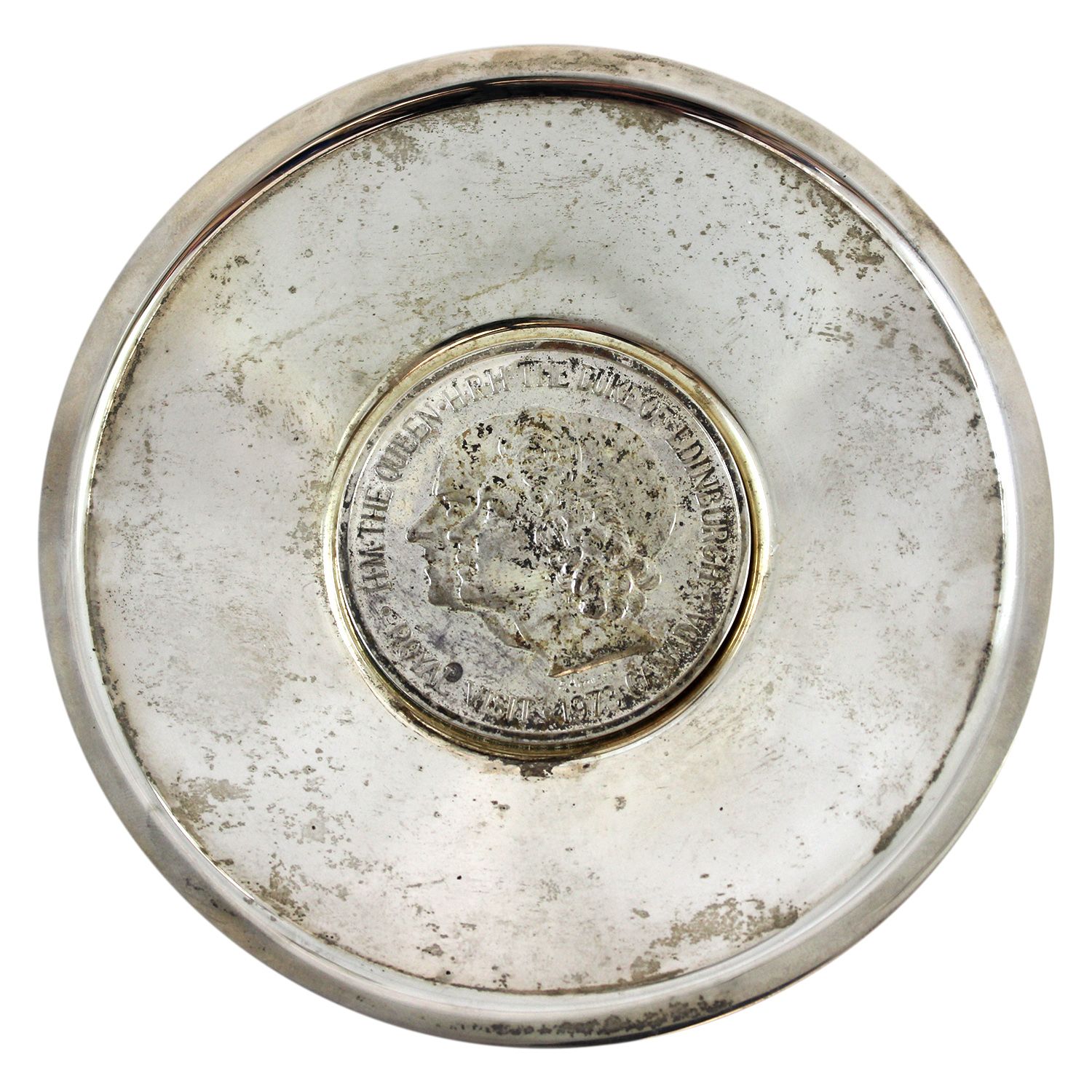 Royal Visit to Canada. Made in Canada by the Jacques Cartier Mint and comes in original box. Plate has some toning and box has a few scuffs on the outside. Weighs 179.4g for a total of 5.336oz fine silver