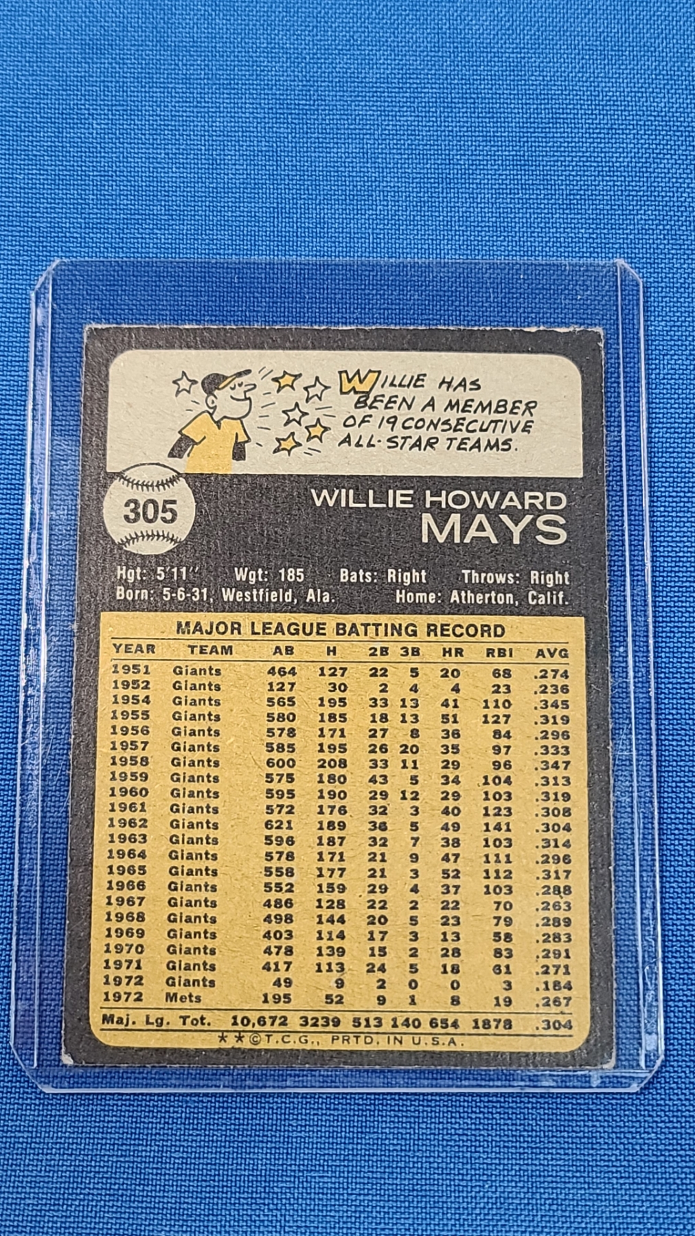 1973 Topps Willie Mays HOF #305 New York Mets Baseball Card - Excellent Condition