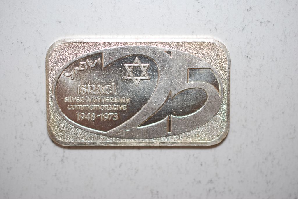 1973 US Silver Corp. Silver Ingot; Israel Silver Anniversary Commemorative Ingot; .999+ Fine 1 Oz.; EST. $35-45