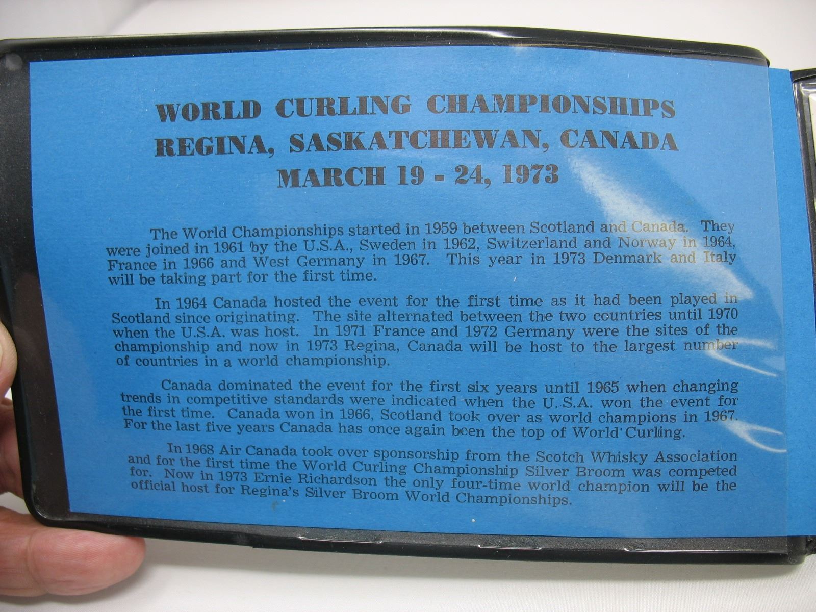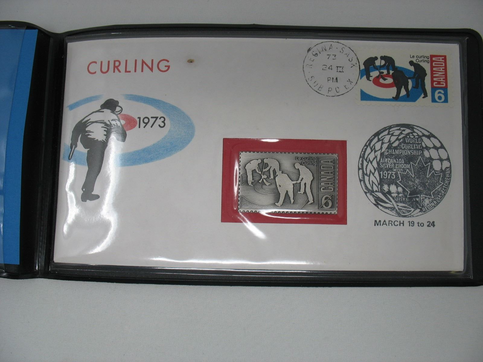 1973 WORLD CURLING CHAMPIONSHIP - REGINA - FIRST DAY COVER & METAL 6 CENT STAMP