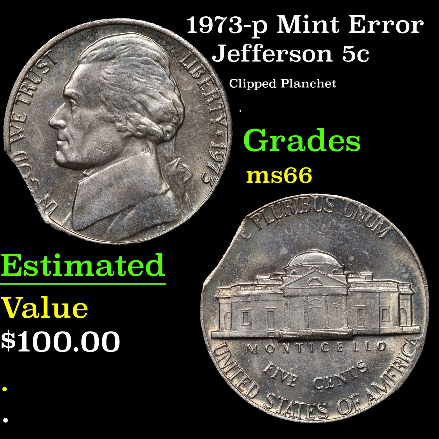 1973-p Mint Error Jefferson Nickel 5c Grades GEM+ Unc.