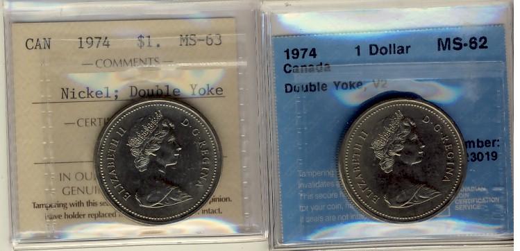 1974 $1 Dbl Yoke V1 ICCS MS63 & V2 CCCS MS62. Lot of 2 coins.