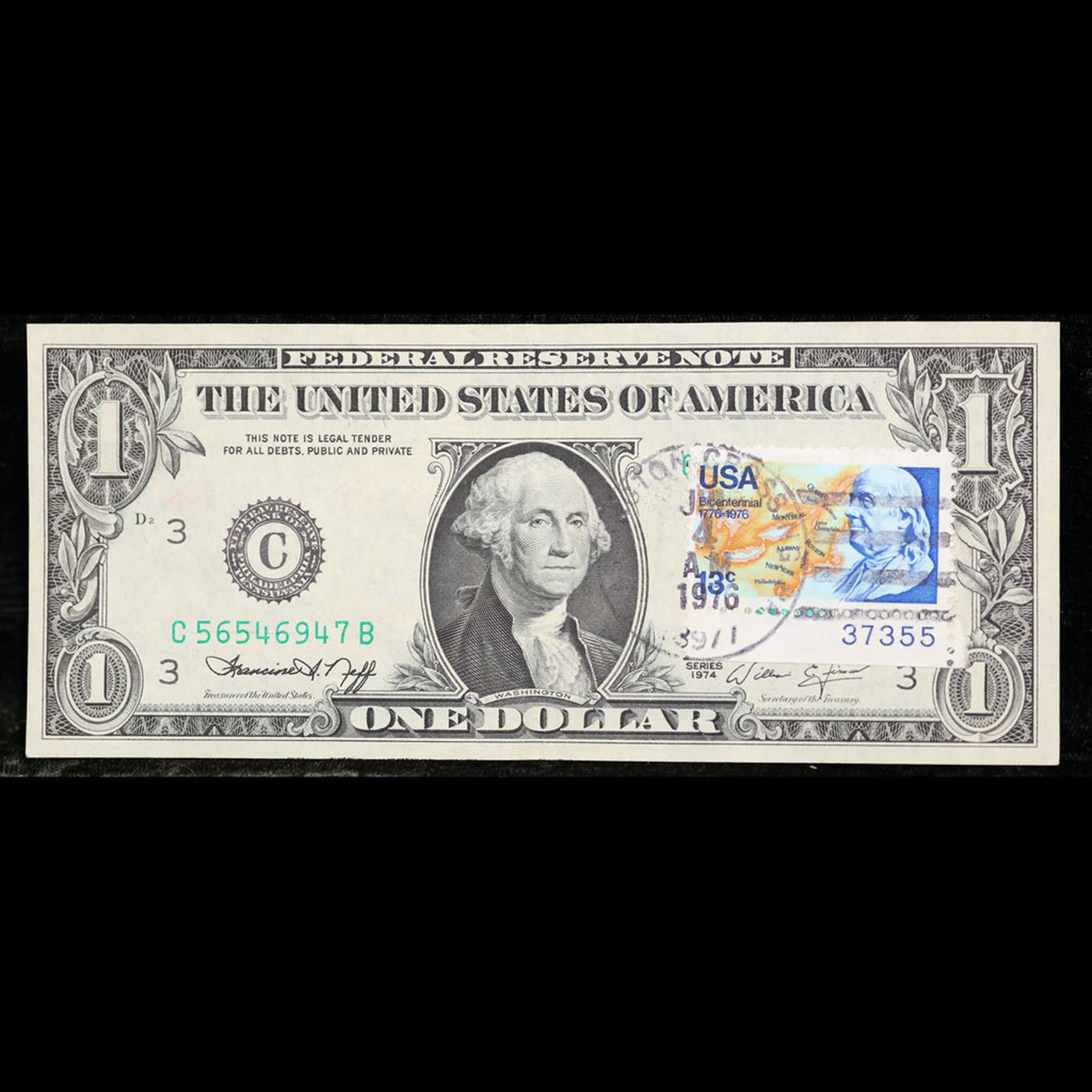 1974 $1 Federal Reserve Note 1st Day of Issue, with Stamp, Signatures of Neff & Simon (Philadelphia,
