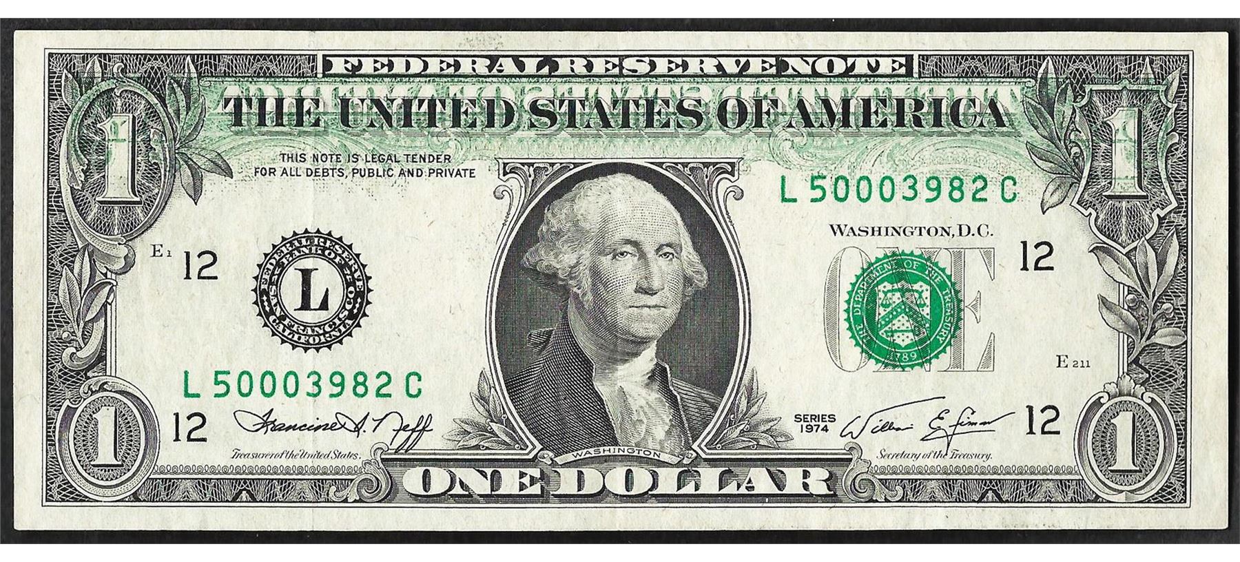 One 1974 $1 Federal Reserve Note Offset ERROR.