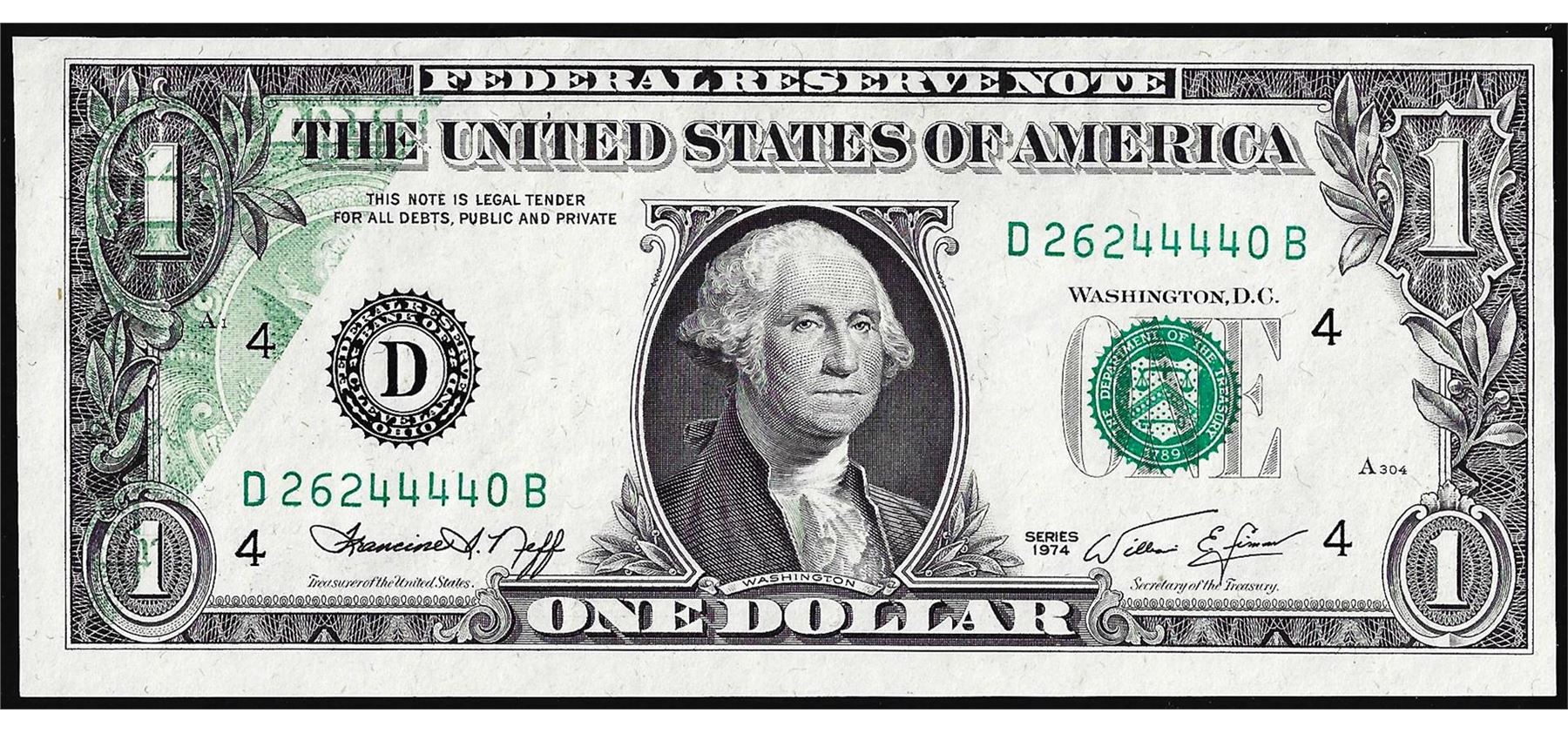 One 1974 $1 Federal Reserve Note Partial Offset Error.