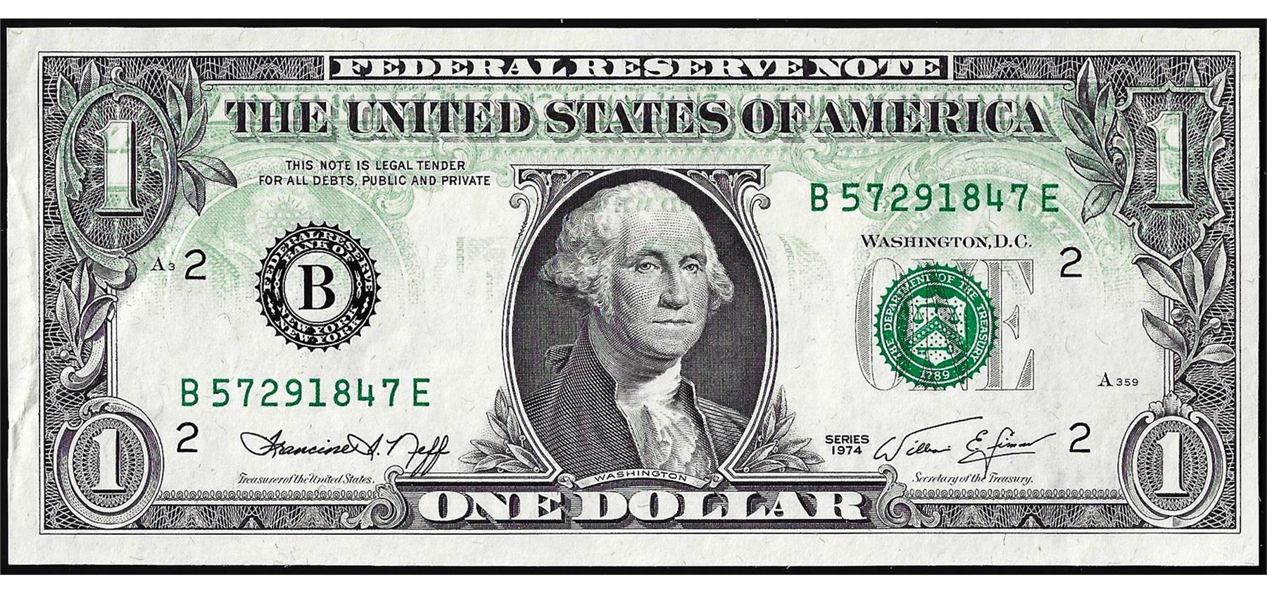 One 1974 $1 Federal Reserve Note Partial Offset Error.