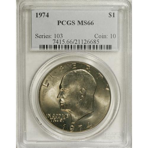 1974 $1 MS66 PCGS. This highly lustrous Premium Gem ex
