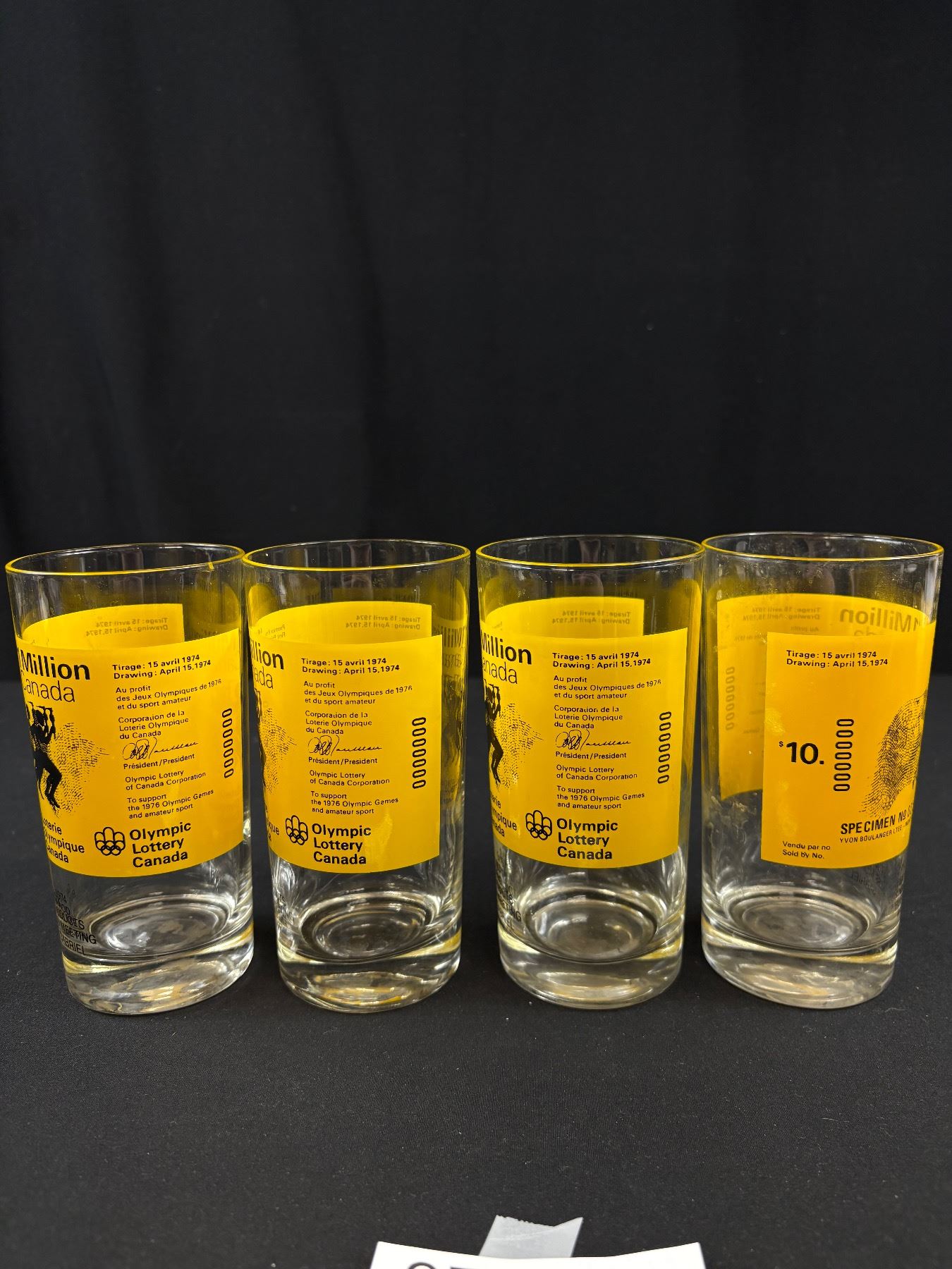 1974 $1 Million Olympic Lottery Canada - Rare Set of 4 Cocktail Glasses