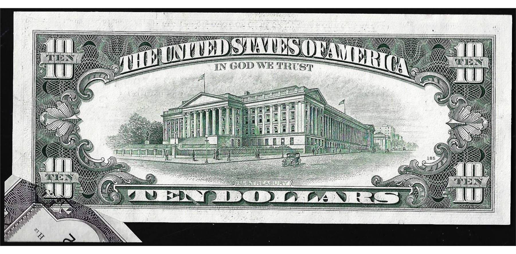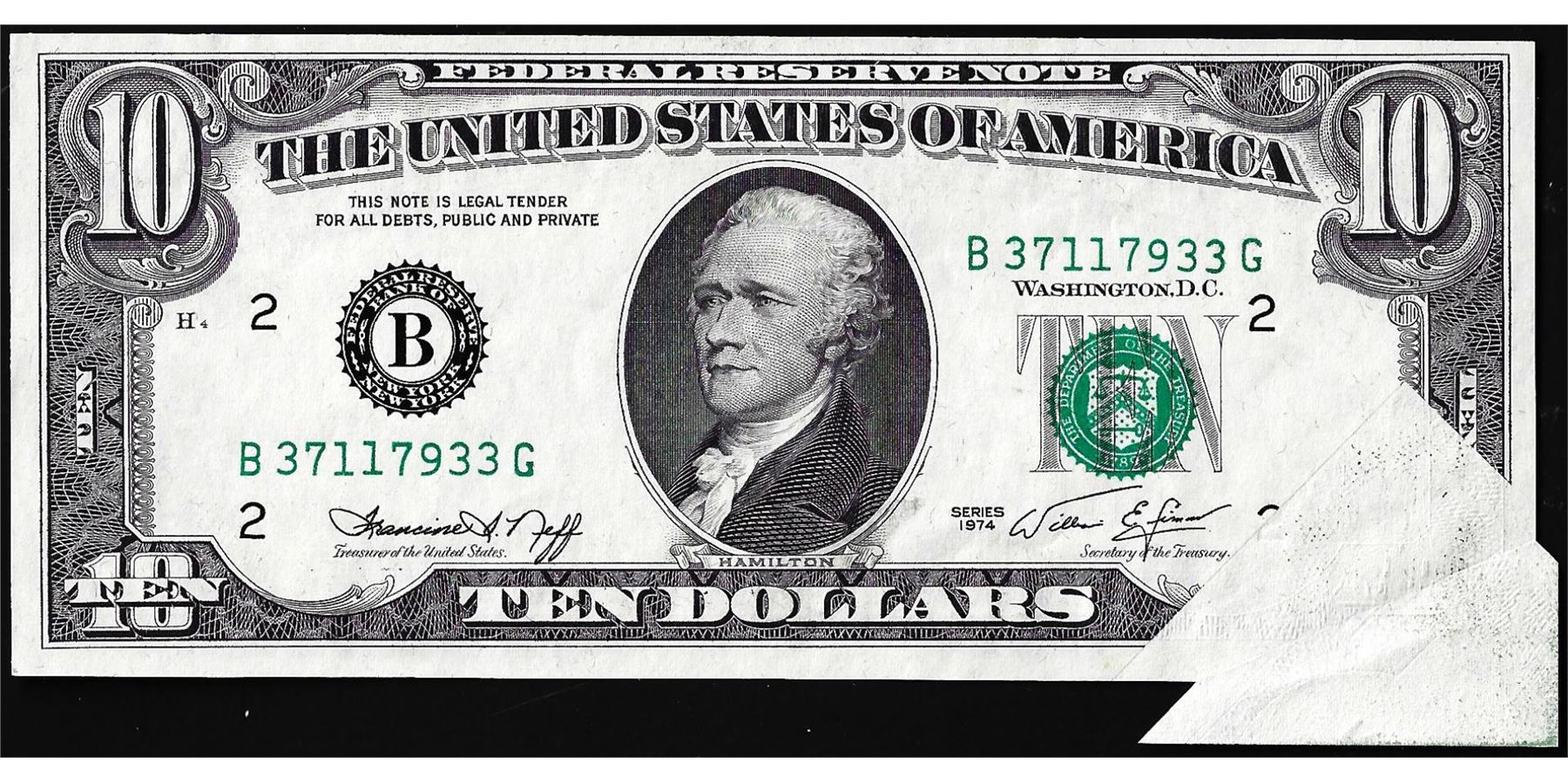 One 1974 $10 Federal Reserve Butterfly Fold Error Note New York.