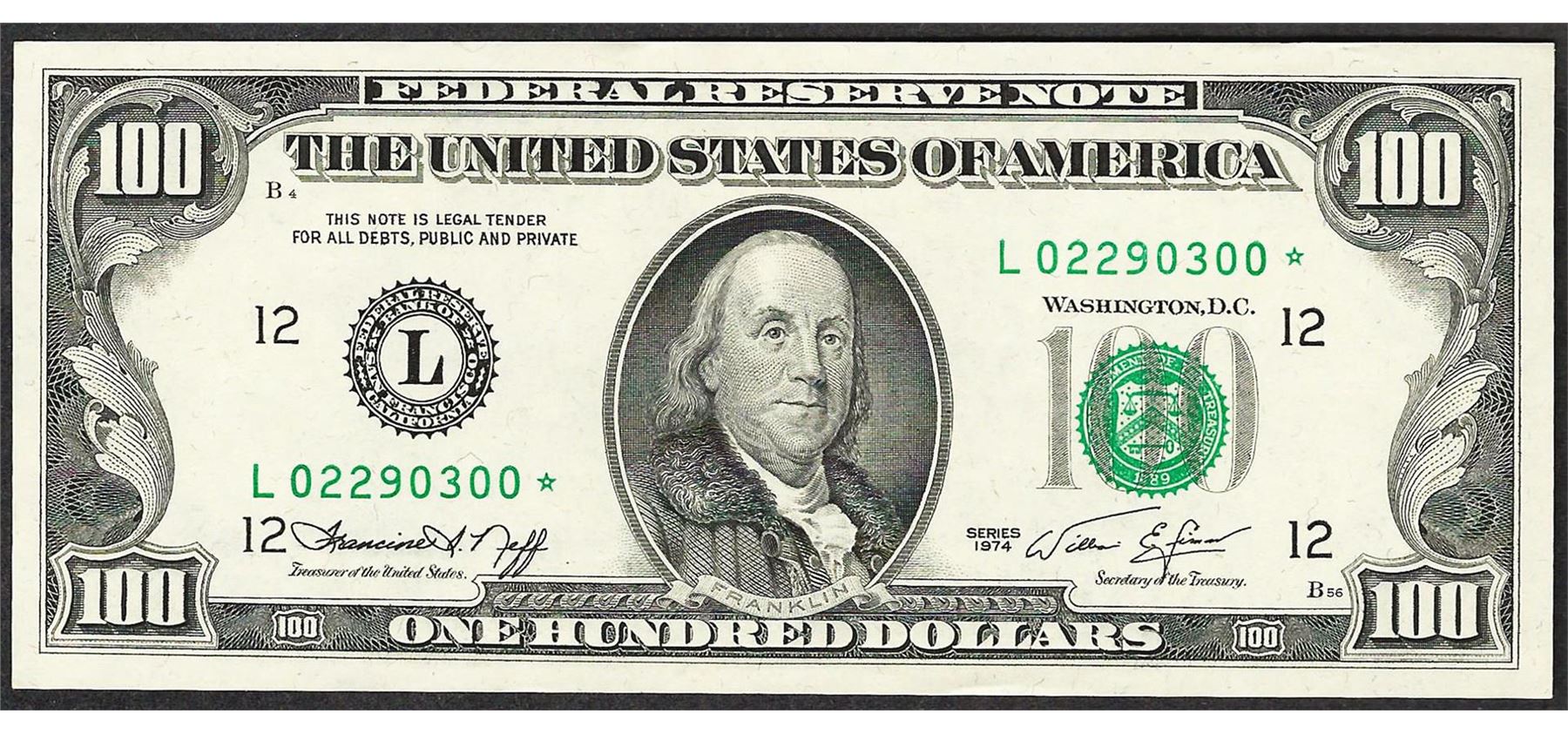 One 1974 $100 Federal Reserve STAR Note.