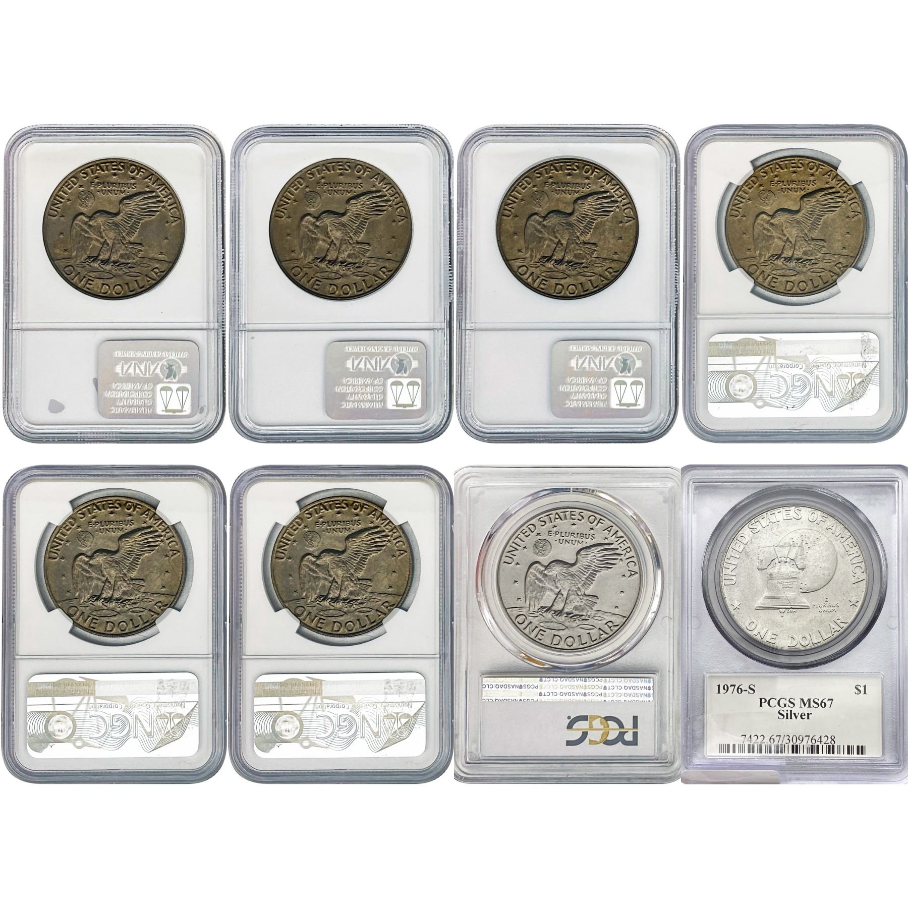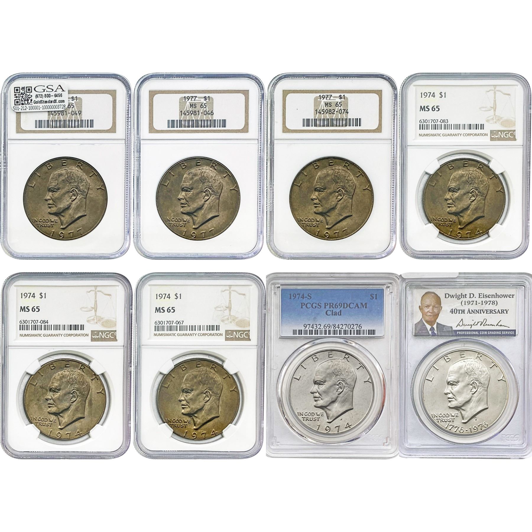 1974-1977 Gem BU/PR Ike Dollar Lot [8 Coins] NGC/PCGS MS/PR65-69