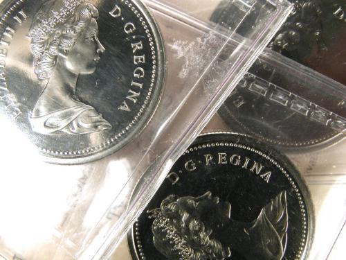 Nickel Dollars 1974 and 1975, both ICCS PL-65 Cameo. Plus 1976 ICCS PL-64 Cameo, 1977 and 1978, both ICCS SP-65 Cameo, 1979 ICCS SP-64, 1982 ICCS PF-66 Ultra Heavy Cameo and 1983 ICCS SP-66. Plus 1997 Flying Loon Nickel-Bronze ICCS SP-66, 1999 Loon ICCS P