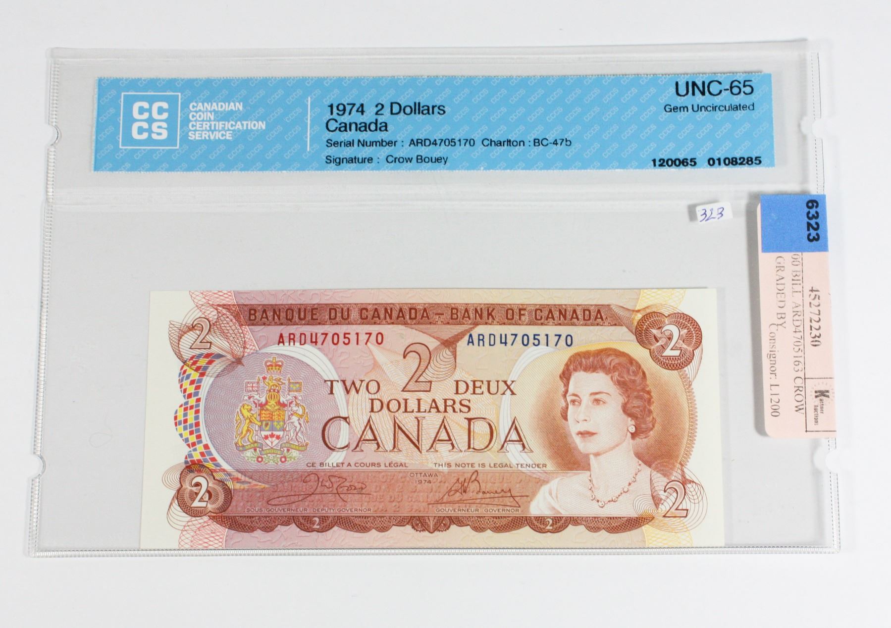 C.C.C.S CUNC-65 PART OF GOV'T RECALL 2020 1974 $2.00 bill ARD4705163 high grade of Choice UNCIRCULATED 63 check values