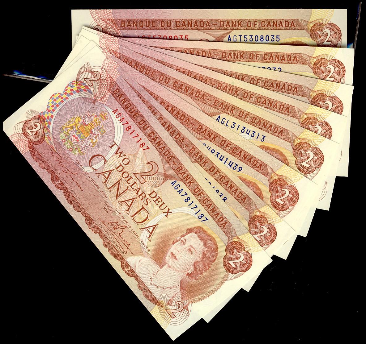 1974 $2 BC--47a RADAR notes. Lot of seven notes all UNC. #AGA7817187, AGB8386838, AGH9341439, AGL3134313, AGM9648469, AGN9407049 and AGP2797972.