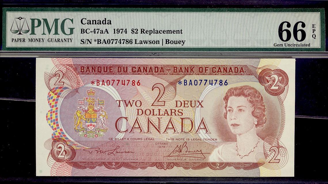 1974 $2 BC-47aA #*BA0774786 PMG Gem UNC66 EPQ.
