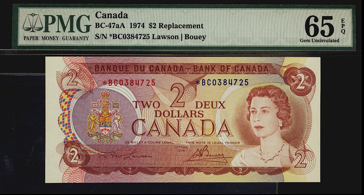 1974 $2 BC-47aA #*BC0384725 PMG Gem UNC65 EPQ.