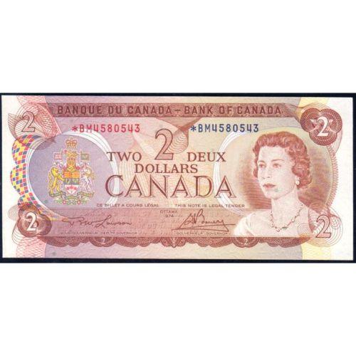 1974 Two Dollars Replacement Lawson-Bouey, BC-47aA Serial Number *BM4580543, PMG Gem Uncirculated 65 Exceptional Paper Quality