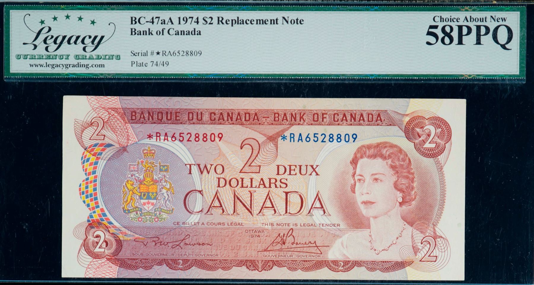 1974 $2 BC-47aA #*RA6528809, Legacy Choice About Uncirculated-58PPQ.