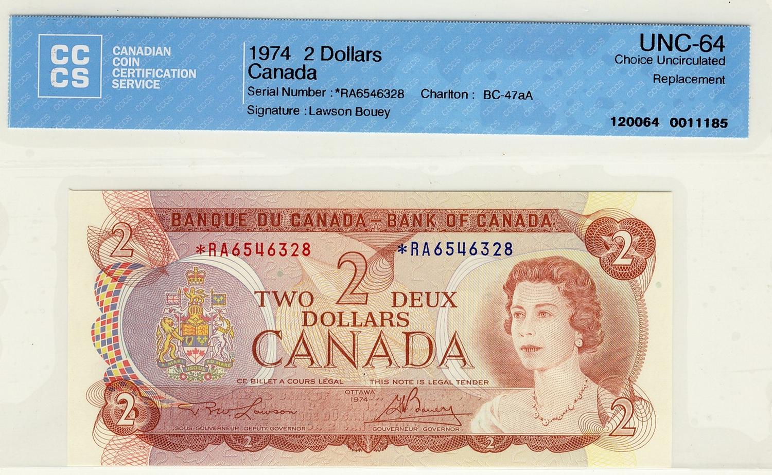 1974 $2 BC-47aA *RA6546328 CCCS UNC64