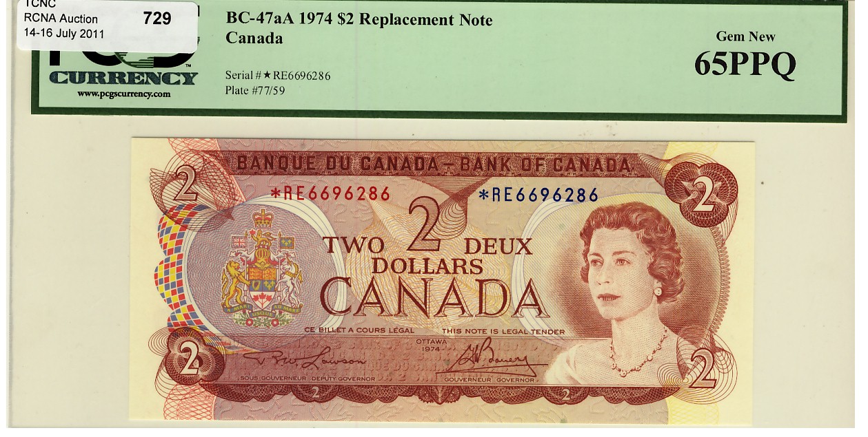 1974 $2 BC-47aA *RE6696286 PCGS UNC65PPQ