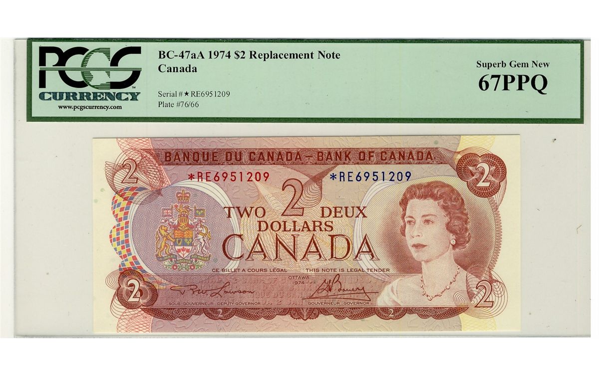 1974 $2 BC-47aA #*RE6951209 PCGS SUPERB GEM UNC67PPQ. Impossible to improve on this one.