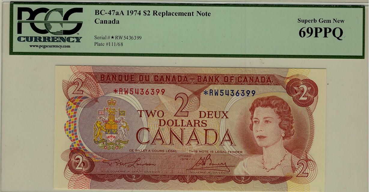 1974 $2 BC-47aA *RW5436399 PCGS UNC69PPQ. Perfect example. Impossible to improve. Worth a premium bid.