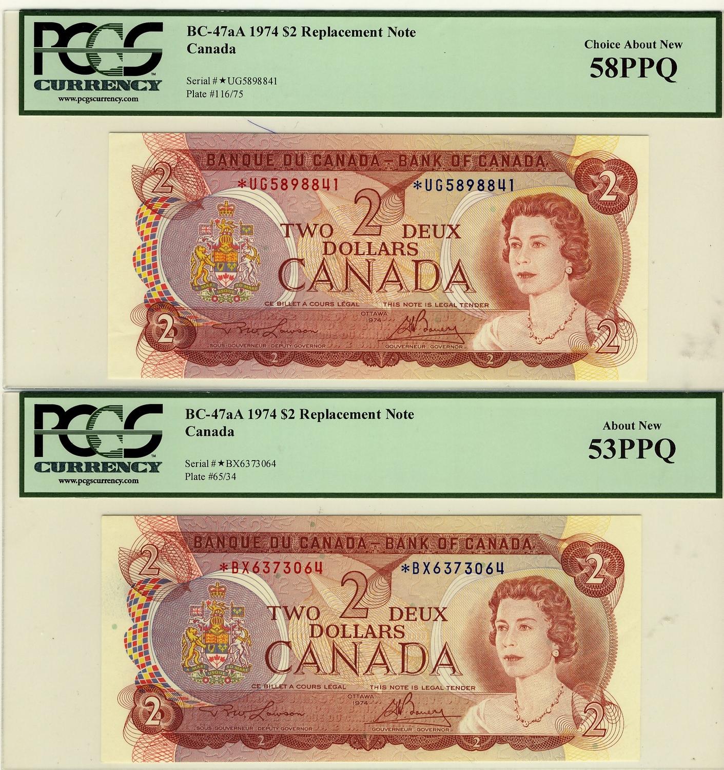 1974 $2 BC-47aA #*UG & *BX PCGS AU58 and AU53 respectively.  Both PCGS PPQ.